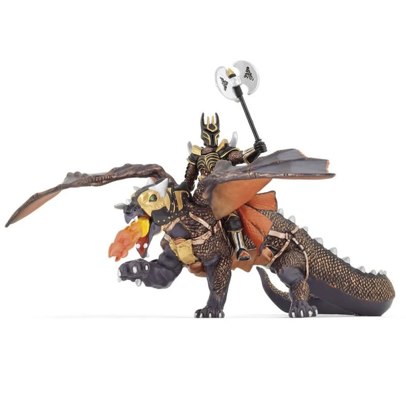 Il tient aussi bien debout seul qu’à cheval sur le dragon des ténèbres qui lui est prédestiné (vendu séparément, voir ci dessous).